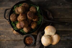 De boeren gehaktbal is gemaakt van kwaliteitsproducten en smaakt verrukkelijk.