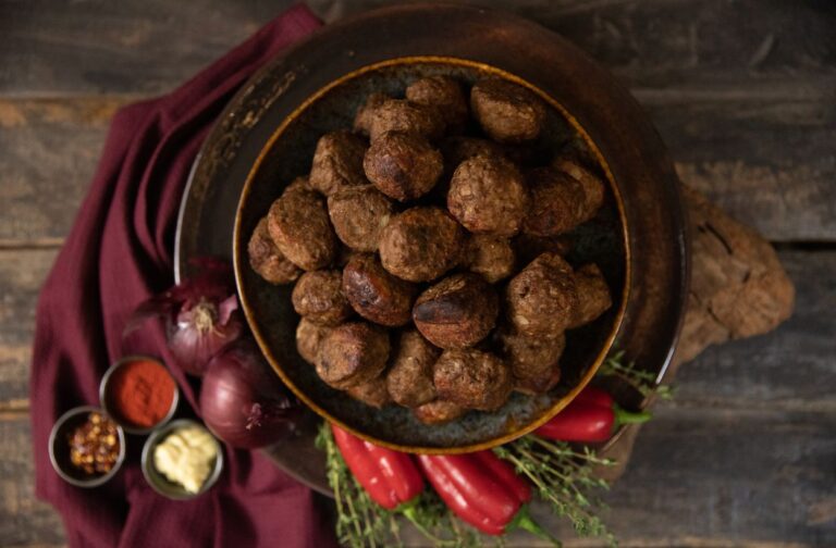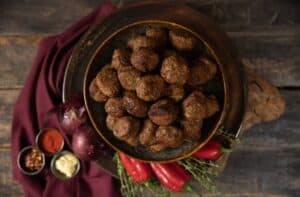 Deze gehaktbal met verse ui en een pepertje is geïnspireerd op grootmoederskeuken. De bal staat garant voor een unieke smaakcombinatie van pittig en zoet.