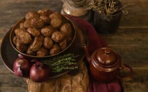 Heerlijke gebraden borrelballetjes met verse ui geïnspireerd op grootmoederskeuken.